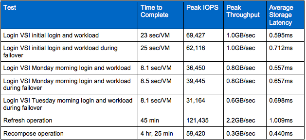 NetApp has used Login VSI, the industry-recognized standard for VDI workload testing, to perform an extensive series of verification testing of the All-Flash FAS f0r multiple VDI architectures. Each of the following technical reports are loaded with test plan details and results which demonstrate the combination of sustained high IOPs and low latencies consistently seen throughout the testing: